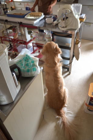 キッチンでお行儀よくおねだり。