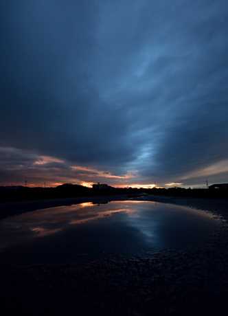 アスファルトの水溜りと共にパシャリ。