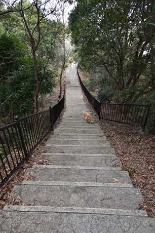 下りの階段も薄暗い~。