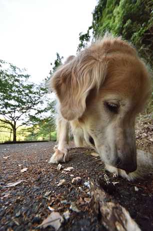 拾った木の枝をバリバリに砕いて遊ぶイアル。