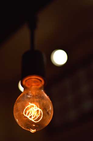 カウンターの上に並んだ電球、