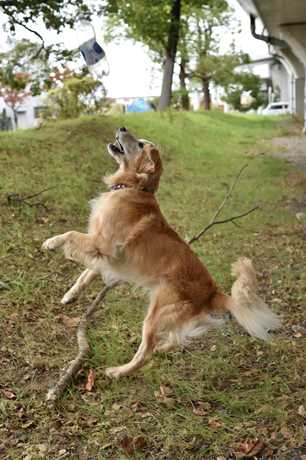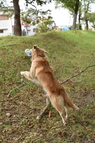 探し当てたペットボトルを使ってレトリーブ。