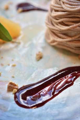 ソースをクリームに乗せて一緒に口の中へ~。