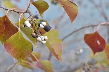 ナンキンハゼの葉の紅葉も鮮やかできれい。