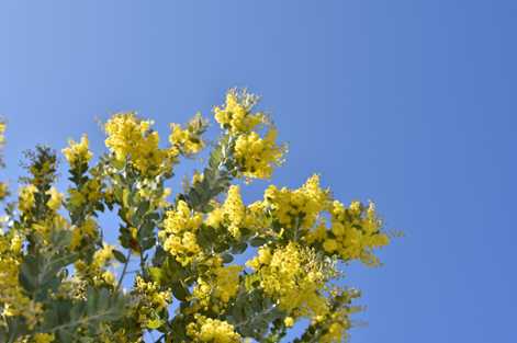 お店の前のミモザが満開だと知り見てきた。