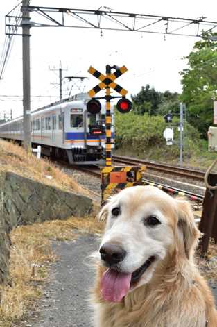 線路沿いの玄関先にバラの花。